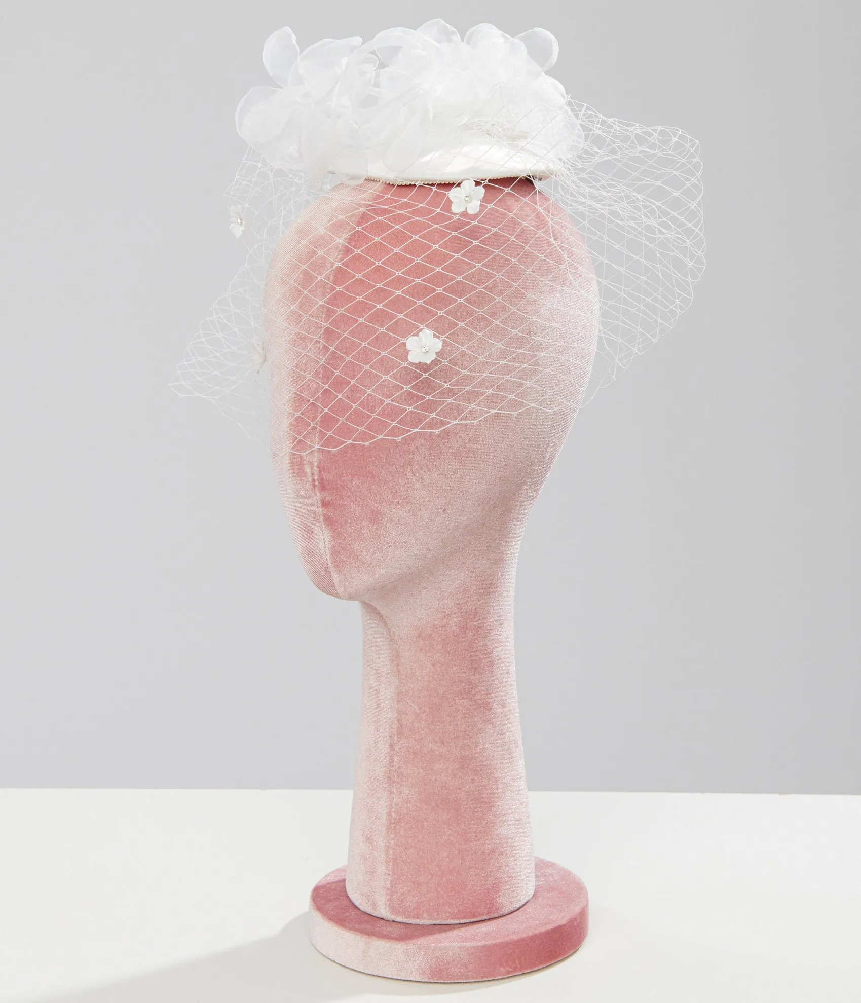 1920s White Floral & Mesh Veil Fascinator