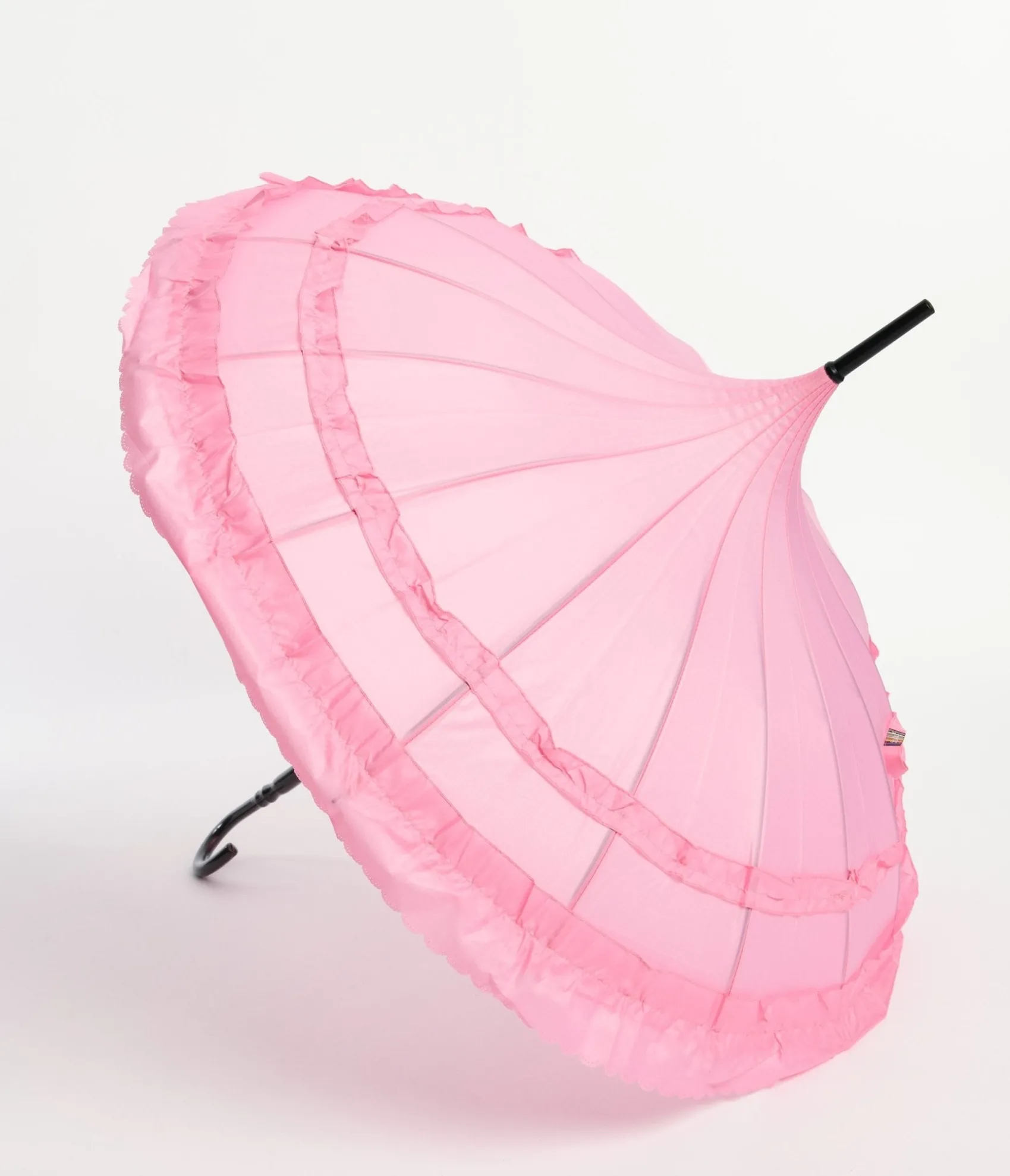 Cream & Black Sparkle Dot Frilled Pagoda Umbrella