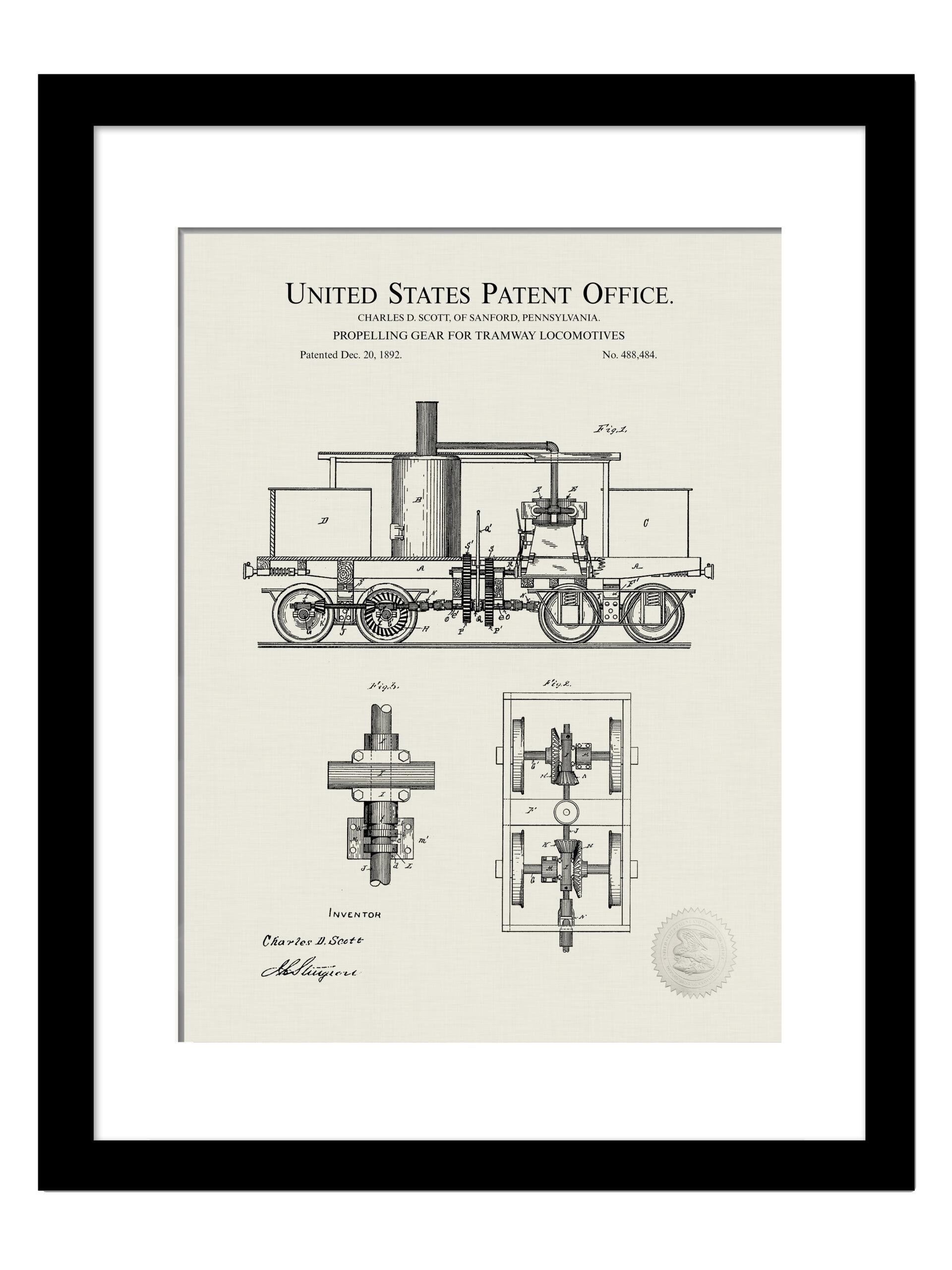 Vintage Rail Decor | Print of 1891 Tramway Locomotive Patent