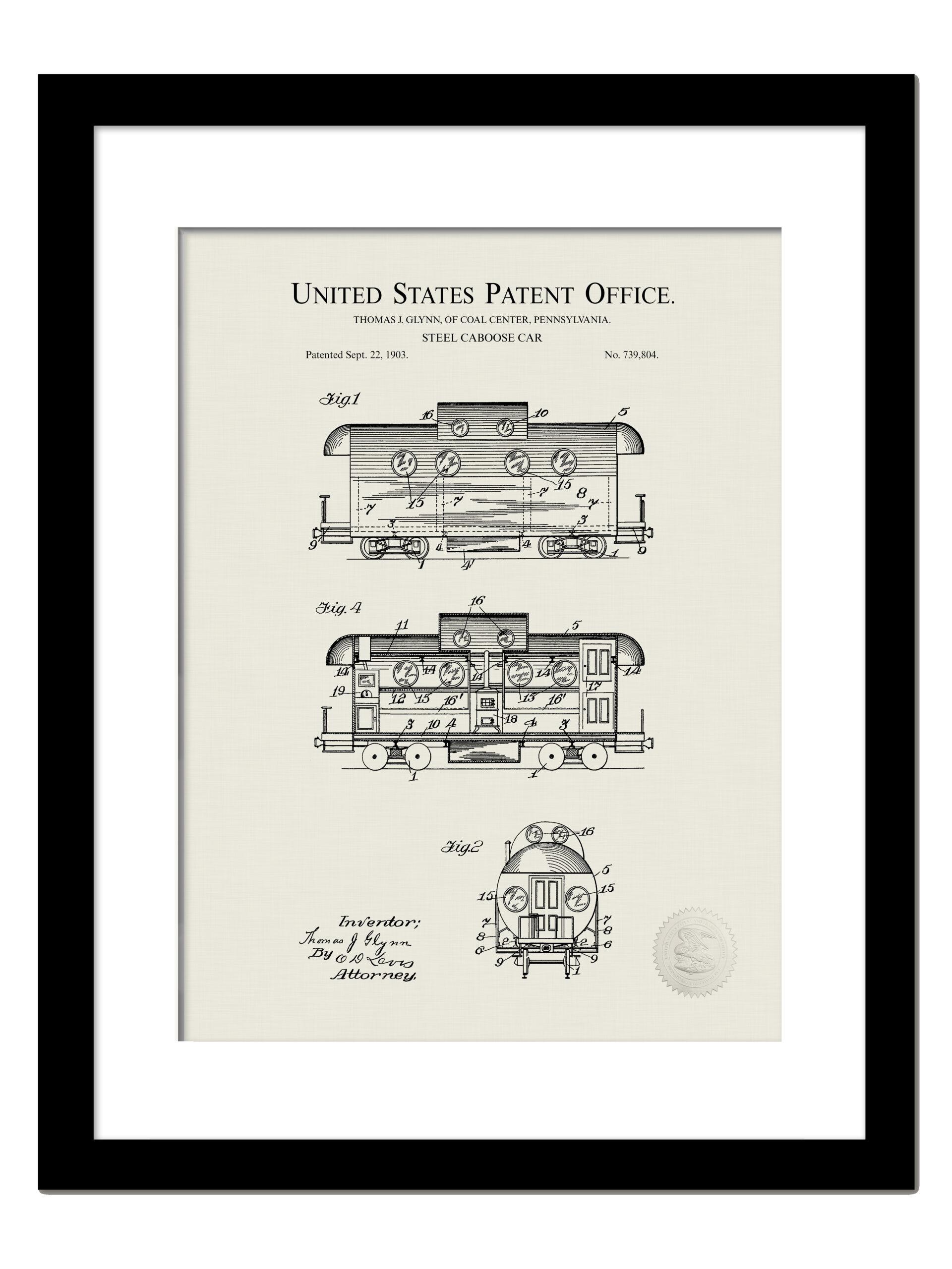 Antique Train Art | Vintage Locomotive, Car, and Caboose Patents