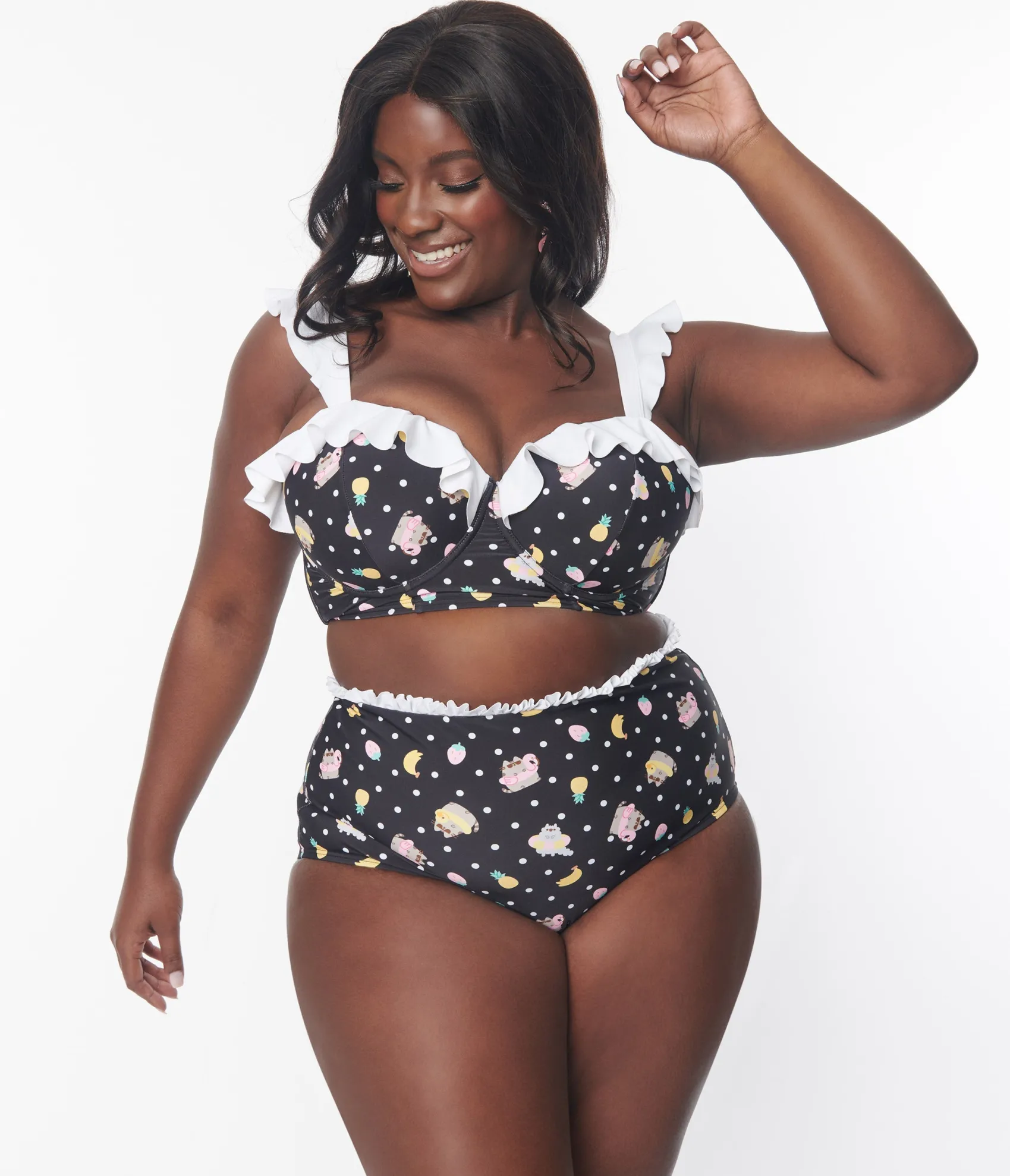 Pusheen x Unique Vintage Plus Size Pool Time Cape May Swim Bottoms