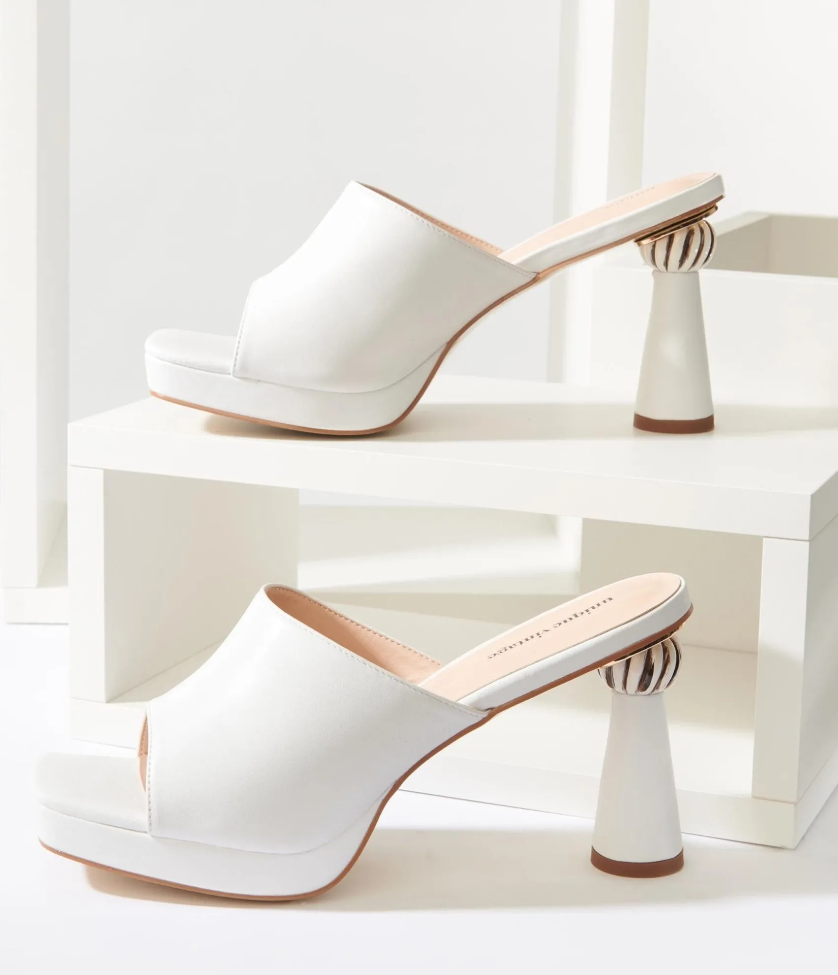 Unique Vintage White Leatherette Spiral Ball Mule Heels