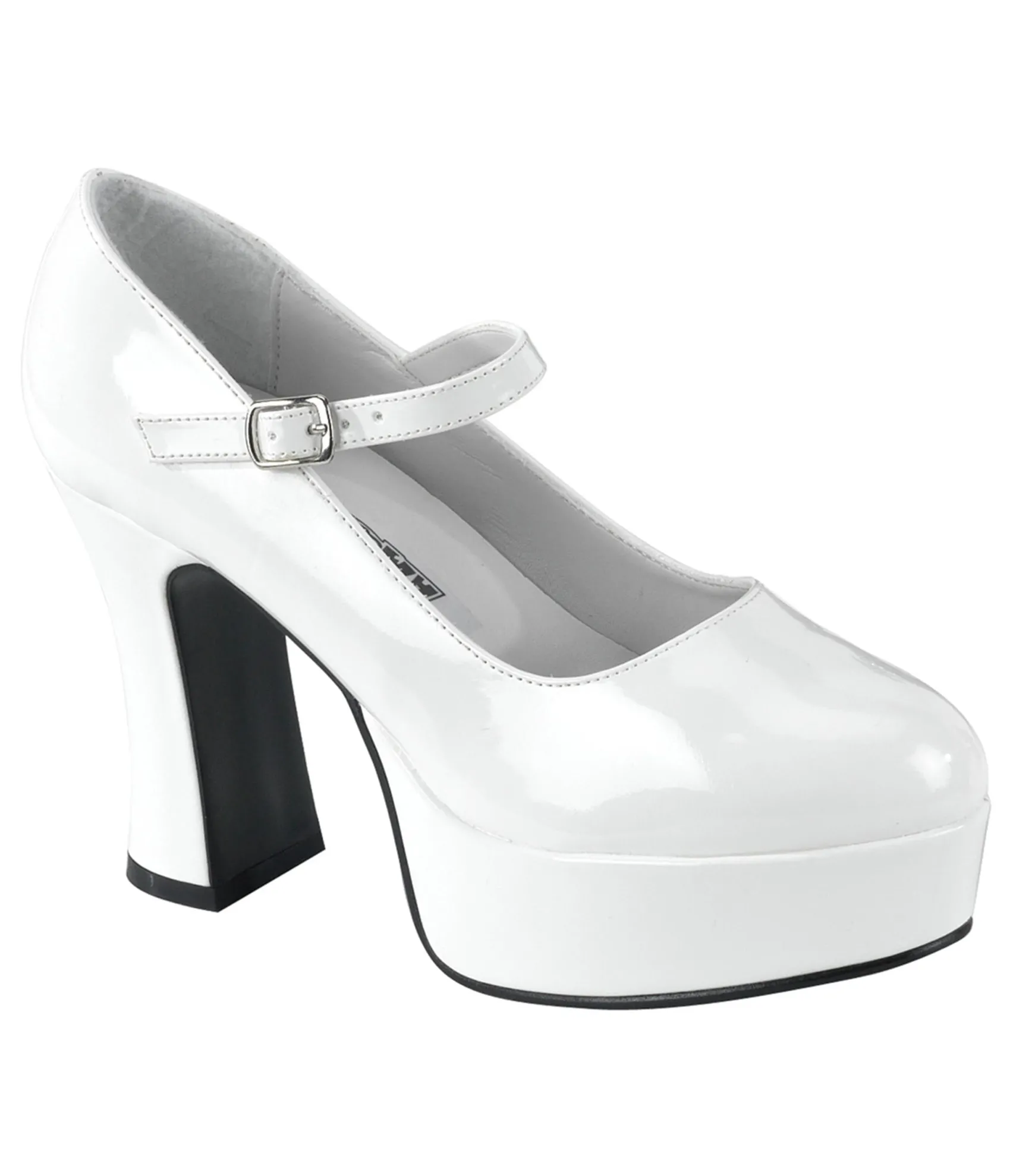 White Patent Heel Mary Jane Pumps